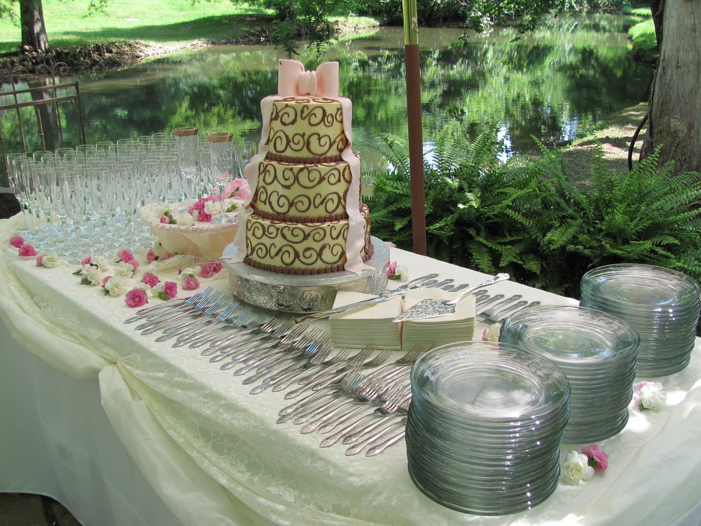 Includes: Cake Stand, Knife and Server, Linens, Plates, Silverware, Napkins, Glassware, Chilling Tub, Trash, and Recyclables Removal.